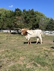 This young heifer is extremely feminine and is double bred with Haltoms Shiny Penny in her pedigree. She could be something truly special as her granddam is pretty amazing. Watch as this girls matures and puts on horn and twist. Confirmed bred to Stranglehold for a fall/winter 2025 calf